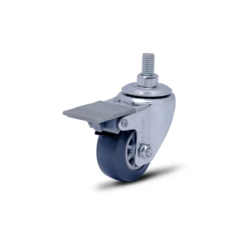 O Rodízio Giratório 50mm com Espiga e Freio Roda em PVC Cinza (1494) - Colson é a solução ideal para quem busca mobilidade com segurança e praticidade em móveis, expositores e equipamentos de pequeno porte.