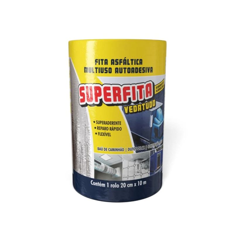 A Superfita 20CM X 10M – Denver é uma fita asfáltica autoadesiva indicada para vedação, impermeabilização e reparos rápidos em diversas superfícies.