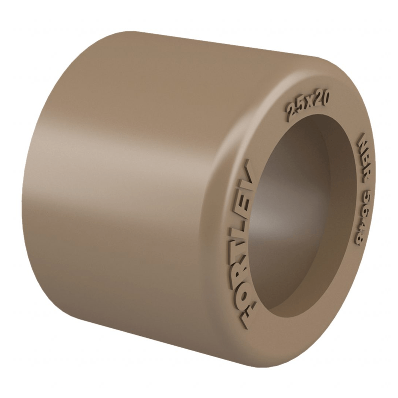 Muito mais cuidado com a água. O Sistema Predial de Água Fria Fortlev apresenta um conjunto de tubulações e conexões, cuidadosamente desenvolvidas conforme norma ABNT NBR 5648, para conduzir água potável à temperatura ambiente até os pontos de utilização. A Bucha de Redução Curta Fortlev reduz o diâmetro da tubulação soldável de água fria. Fabricados em PVC na cor marrom, suportam até 7,5Kgf/cm² ou 75 m.c.a. à temperatura de 20°C.