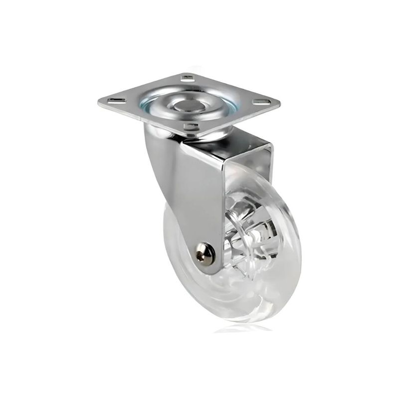 A placa de fixação oferece instalação firme e estável, tornando o rodízio indicado para móveis residenciais, racks, expositores, carrinhos leves, mesas auxiliares e projetos decorativos.