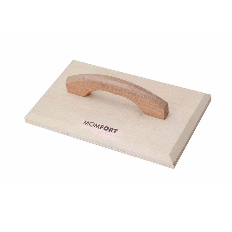 Tradicional, a desempenadeira de madeira é utilizada para aplicar, nivelar e uniformizar a argamassa de revestimentos e contrapisos. A madeira concentra umidade o que auxilia na aplicação da massa.