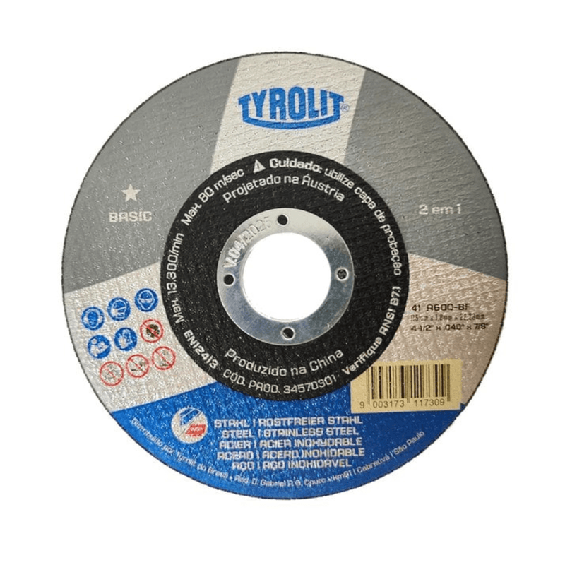 Discos e AbrasivosDISCO CORTE 41C 4.1/2 X 1 X 7/8 CINZA BASIC - TYROLIT
