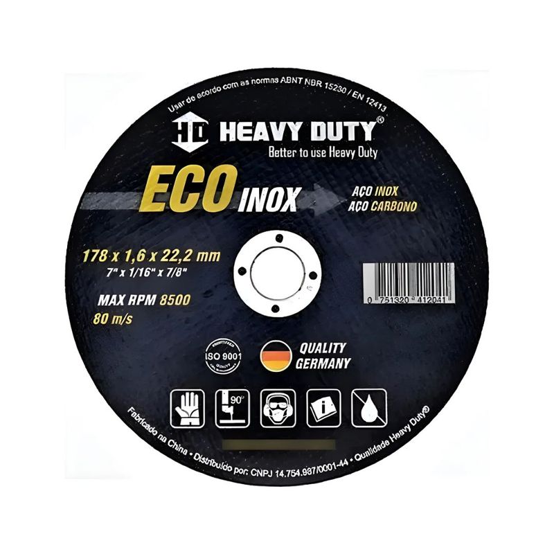 O Disco de Corte EcoInox 7" x 1,6 x 7/8 – Heavy Duty é desenvolvido para cortes eficientes e precisos em aço inoxidável e metais ferrosos, sendo indicado para uso profissional em serralherias, oficinas, manutenção industrial e construção civil.