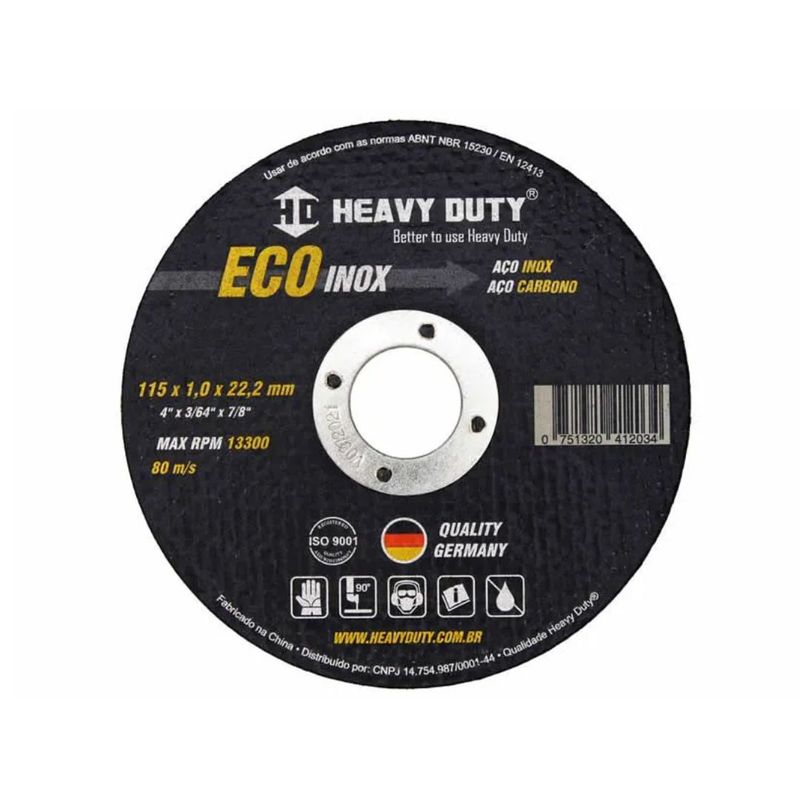 O Disco de Corte EcoInox 9" x 1,9 x 7/8 – Heavy Duty é indicado para corte de aço inoxidável e metais ferrosos, proporcionando alto desempenho, precisão e segurança em trabalhos profissionais e industriais.