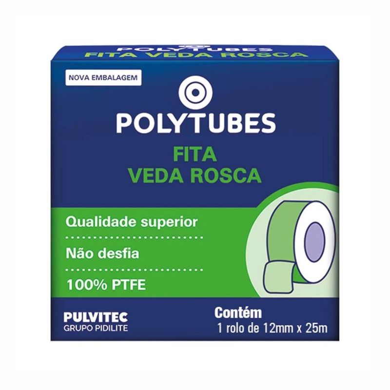 A Fita Veda Rosca 12mm x 25m – Polytubes é indicada para vedação de roscas em conexões hidráulicas, proporcionando encaixe seguro e evitando vazamentos. Produzida em PTFE (teflon), apresenta alta resistência química e ótimo desempenho em instalações de água fria, quente e gás (conforme aplicação).