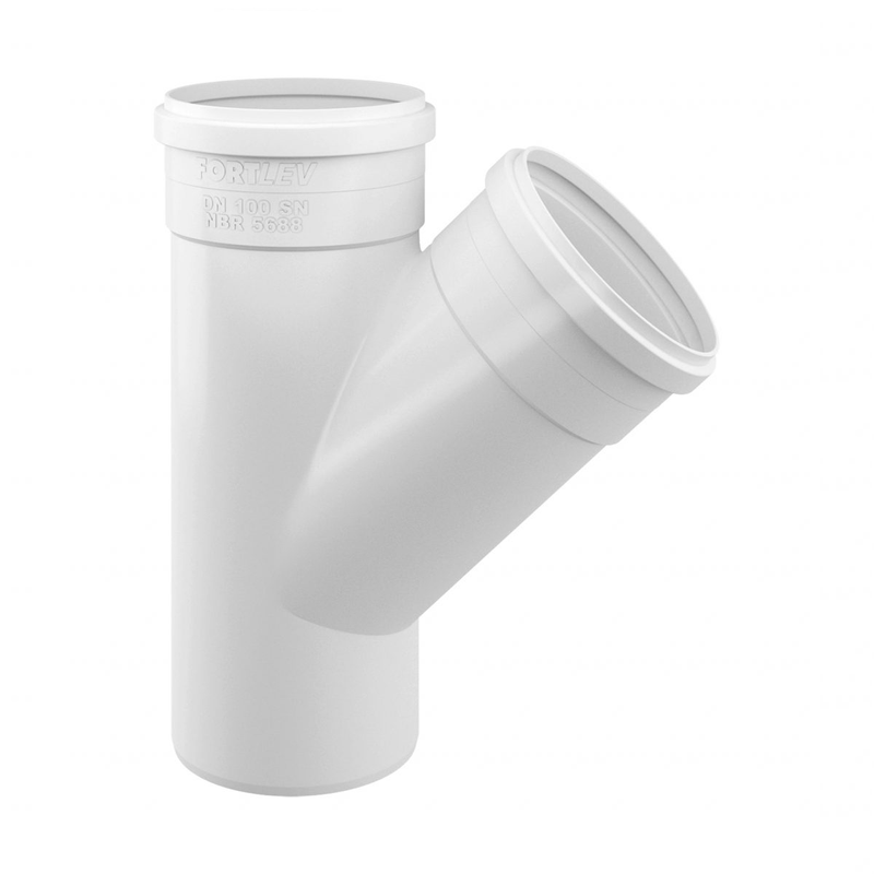Muito mais estanqueidade. O Sistema Predial de Esgoto SN Fortlev é composto por Tubos, Conexões, Caixas Sifonadas e Ralos cuja função é coletar e conduzir os despejos provenientes do uso adequado dos aparelhos sanitários a um destino apropriado, visando atender às demandas de instalações de diversos Tipos. A Junção Simples Esgoto SN Fortlev, conexão muito utilizada no subsistema de ventilação, é fabricada em PVC na cor branca e projetada para escoamento em regime não contínuo à temperatura máxima de 45°C. Os produtos da Linha Esgoto SN Fortlev são fabricados conforme norma ABNT NBR 5688.
