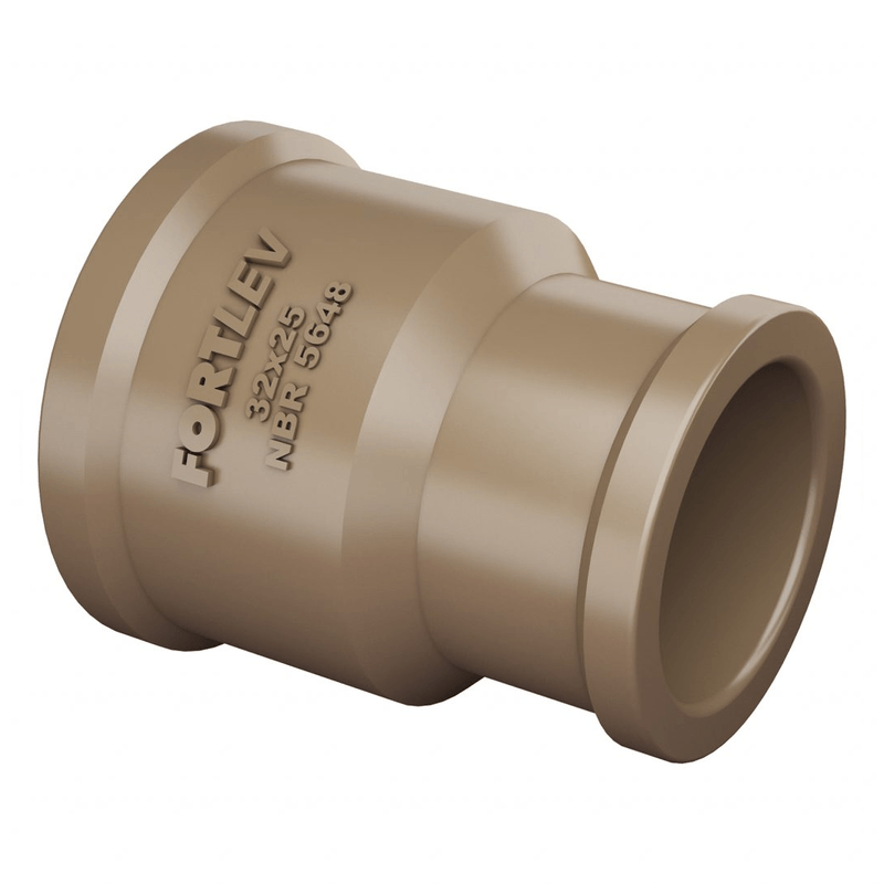 Muito mais cuidado com a água. O Sistema Predial de Água Fria Fortlev apresenta um conjunto de tubulações e conexões, cuidadosamente desenvolvidas conforme norma ABNT NBR 5648, para conduzir água potável à temperatura ambiente até os pontos de utilização. As Luvas de Redução Soldáveis Fortlev interligam os tubos com redução de diâmetro. Fabricados em PVC na cor marrom, suportam até 7,5Kgf/cm² ou 75 m.c.a. à temperatura de 20°C.