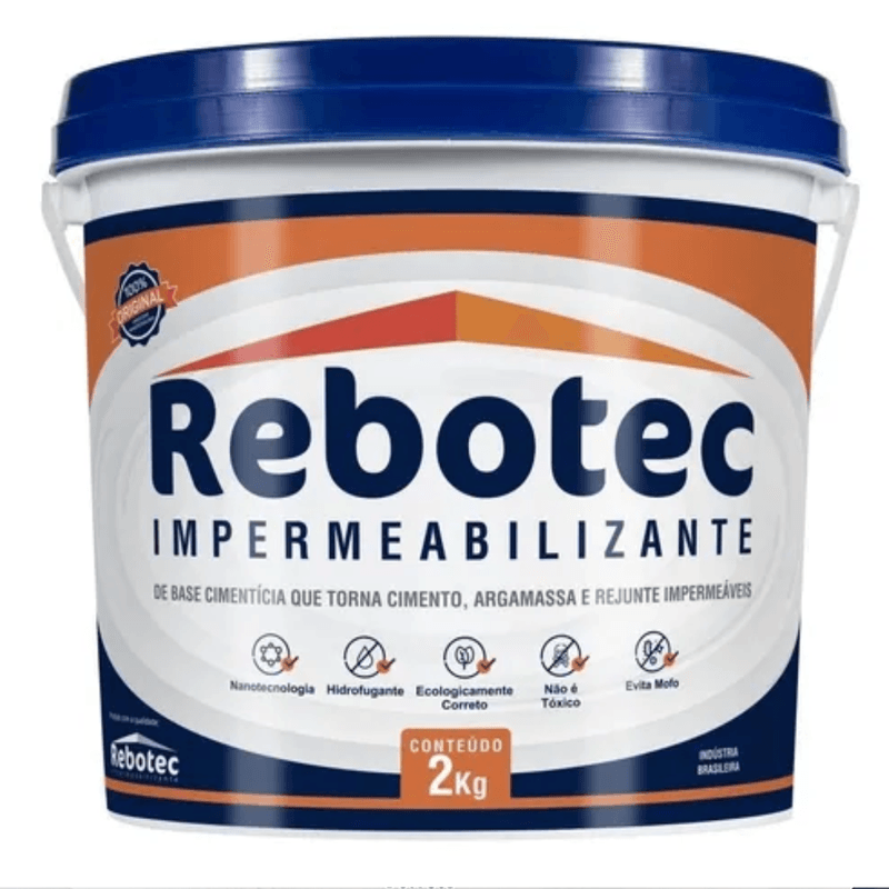 REBOTEC® é um aditivo em pó para impermeabilizar concretos e argamassas. REBOTEC® reage com o cimento durante o processo de hidratação, dando origem a substâncias minerais que bloqueiam a rede capilar, proporcionando uma elevada impermeabilidade ao concreto ou argamassa.
