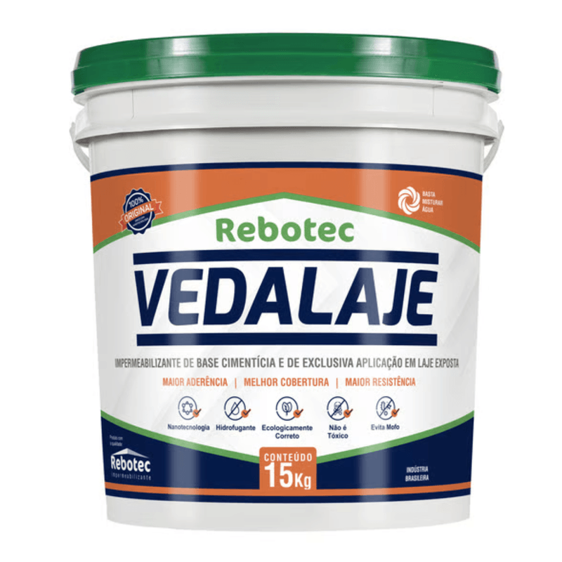 O VEDALAJE é um produto com a tecnologia e a qualidade Rebotec.Sendo em pó, de fácil aplicação e rápido resultado, ele impede a umidade, a infiltração e o mofo de atingir a sua LAJE.