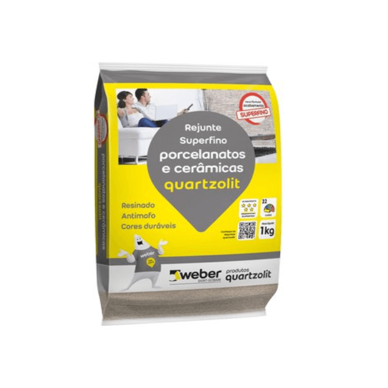 Rejunte cimentício colorido, aditivado, flexível e de acabamento liso.