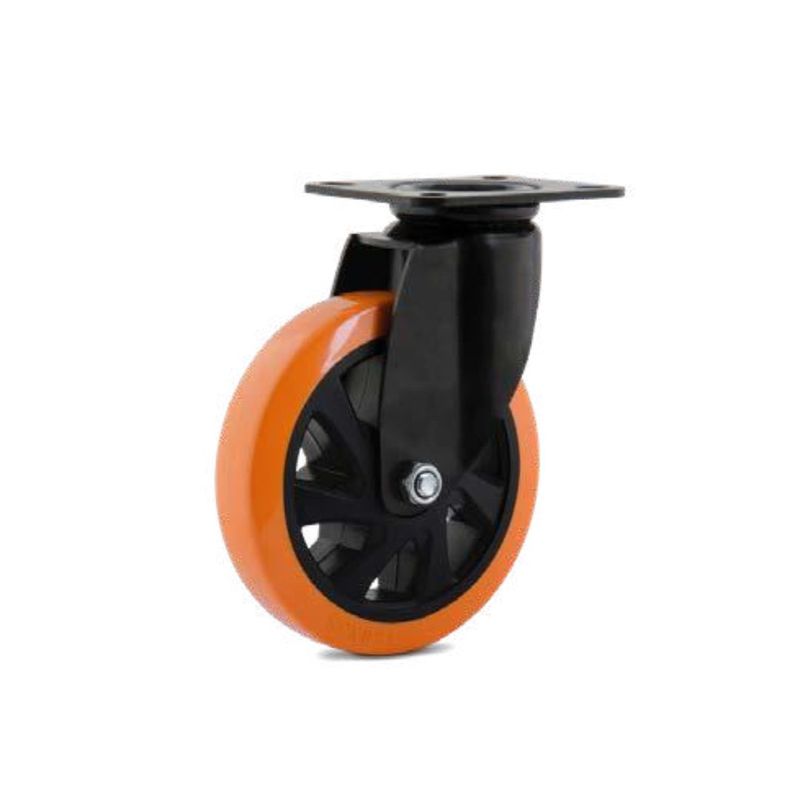 O Rodízio Fixo 125mm Preto com Roda PU e Rolamento Esférico Laranja (4794) - Colson combina resistência, suavidade de rolagem e excelente durabilidade, sendo ideal para aplicações industriais, comerciais e logísticas que exigem movimentação segura e estável.