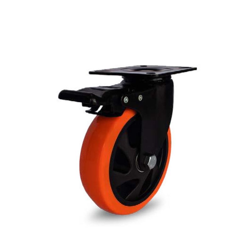 O Rodízio Giratório 100 mm Preto Placa 80x105 Freio Roda Borracha Laranja (8077) – Colson oferece mobilidade, segurança e durabilidade em aplicações leves e médias.