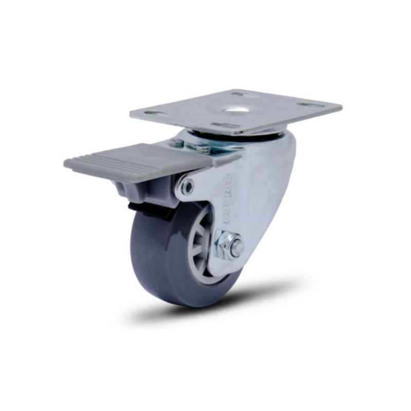 O Rodízio Giratório 50mm com Freio e Roda em PVC Cinza (1496) - Colson é ideal para quem busca mobilidade com segurança em móveis e equipamentos de pequeno porte.