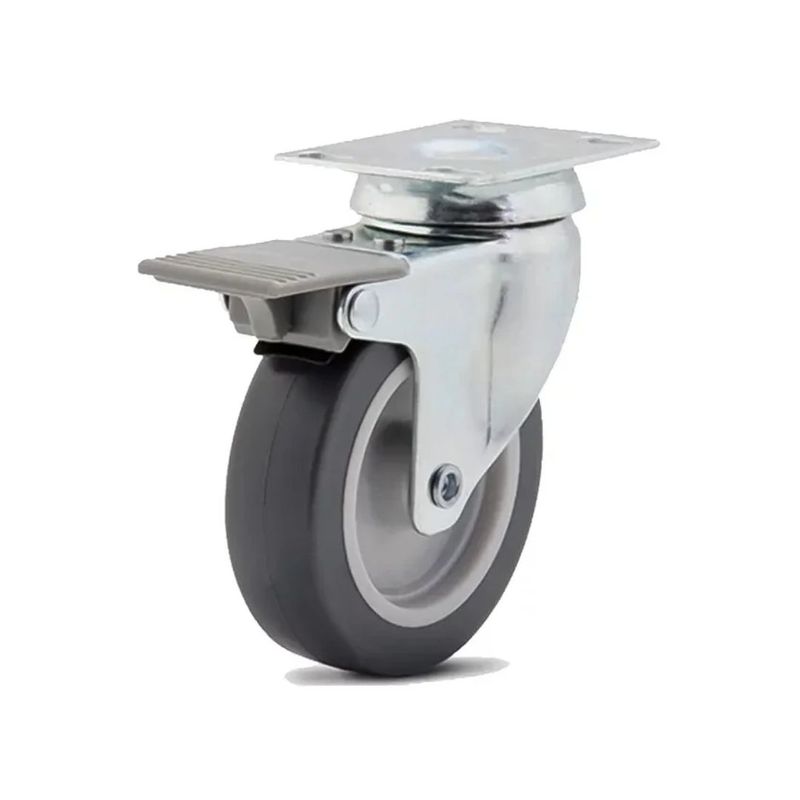 Com movimentação giratória de 360°, o rodízio permite deslocamento ágil e preciso, enquanto o freio manual integrado oferece travamento firme e confiável, garantindo controle total durante o uso.