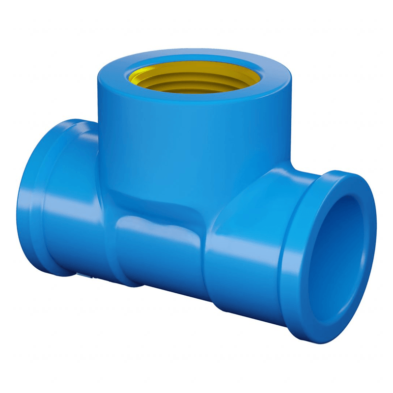 Muito mais cuidado com a água. O Sistema Predial de Água Fria Fortlev apresenta um conjunto de tubulações e conexões, cuidadosamente desenvolvidas conforme norma ABNT NBR 5648, para conduzir água potável à temperatura ambiente até os pontos de utilização. Os Tês Soldáveis com Bucha de Latão Fortlev são as conexões ideais para a instalação de peças com rosca metálica, como torneiras, chuveiros e engates. Fabricados em PVC na cor azul, possuem um inserto de latão na rosca e suportam até 7,5Kgf/cm² ou 75 m.c.a. à temperatura de 20°C.